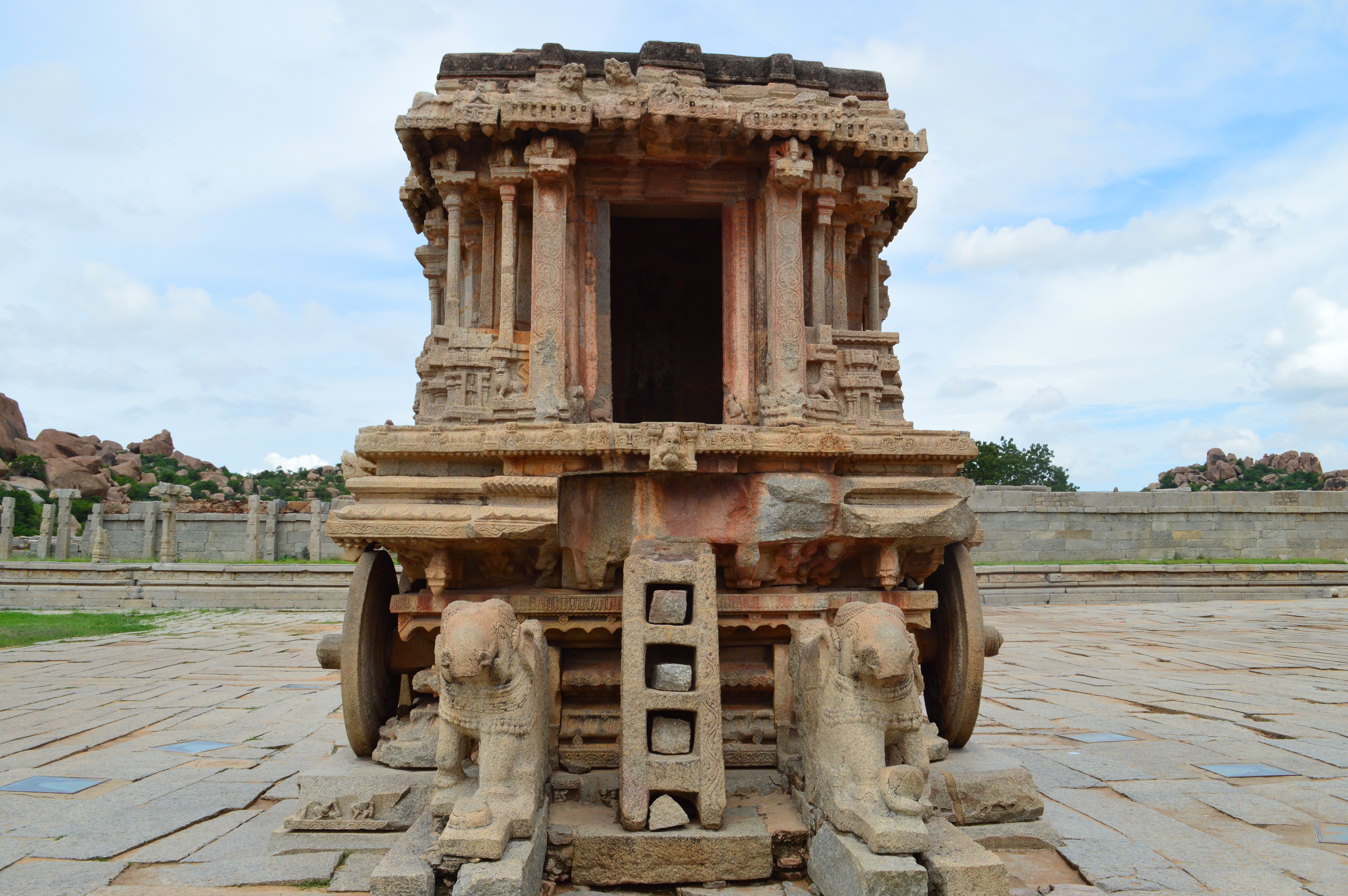 hampi-5ಅದ್ಭುತವಾದ ಶಿಲ್ಪಕಲೆಯ ಪ್ರತೀಕವಾದ ಕಲ್ಲಿನ ರಥವನ್ನು ೧೬ನೆಯ ಶತಮಾನದಲ್ಲಿ, ಕೃಷ್ಣದೇವರಾಯನ ಕಾಲದಲ್ಲಿ ನಿರ್ಮಿಸಿದ್ದರು. ಅರಸನು ಒರಿಸ್ಸಾದಲ್ಲಿರುವ ಪ್ರಸಿದ್ಧ ಕೋನಾರ್ಕ್ ದೇವಾಲಯದಲ್ಲಿರುವ ಕಲ್ಲಿನ ರಥವನ್ನು ನೋಡಿದ್ದನಂತೆ. ಆ ಕಲೆಗೆ ಬೆರಗಾಗಿ, ತಾನೂ ಅಂತಹುದೇ ರಥವನ್ನು ನಿರ್ಮಿಸುವ ನಿರ್ಧಾರ ಮಾಡಿದನಂತೆ. ನಾವು ಶಾಲೆಯಲ್ಲಿದ್ದಾಗ, ಭೂಮಿ ನಾಶವಾಗುವ ಮುಂಚೆ, ಹಂಪೆಯ ಕಲ್ಲಿನ ರಥ ಓಡುತ್ತಂತೆ”, ಎಂದು ನನ್ನ ಸಹಪಾಠಿಗಳು ಹೇಳುತ್ತಿದ್ದ ಮಾತು ನೆನಪಿಗೆ ಬಂದು ನಾನು ಅಲ್ಲಿಯೇ ಒಮ್ಮೆ ಮುಗುಳ್ನಕ್ಕೆ. ವಾಸ್ತವದಲ್ಲಿ ಈ ಕಲ್ಲಿನ ರಥವೂ ಒಂದು ಗುಡಿ. ಆದರೆ ಅದಕ್ಕೆ ರಥದ ಆಕಾರವನ್ನು ಕೊಟ್ಟಿದ್ದಾರೆ. ಸುಮಾರು ೫೦೦ ವರ್ಷಗಳ ಹಿಂದೆ ನಿರ್ಮಿತವಾಗಿರುವ ಈ ರಥವನ್ನು, ಅದರ ಮೂಲ ಸ್ಥಲದಿಂದ ಇಲ್ಲಿಯವರೆಗೂ ಯಾರೂ ಸರಿಸಿಲ್ಲ!