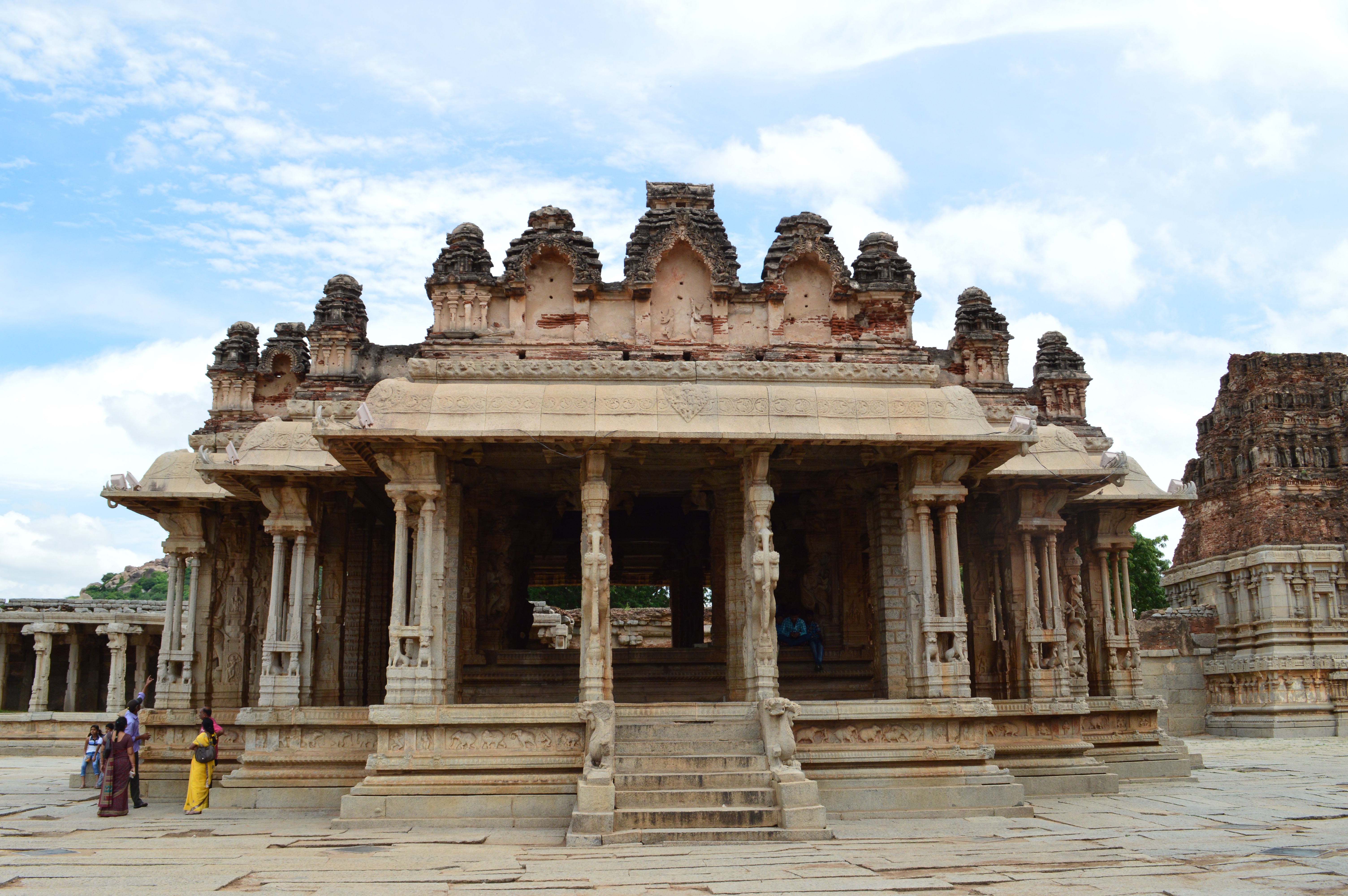 hampi-6ವಿಜಯವಿಠಲನ ದೇವಸ್ಥಾನ ಮತ್ತು ಅದರ ಸುತ್ತಮುತ್ತಲಿನ ಶಿಲ್ಪಕಲೆ ಪ್ರಸಿದ್ಧವಾದದ್ದು. ಜಗತ್ಪ್ರಸಿದ್ಧ ಕಲ್ಲಿನ ರಥವಿರುವುದೂ ಅಲ್ಲಿಯೆ! ಸರಿ ನಾವೆಲ್ಲಾ ಕಾಲೆಳೆಯುತ್ತಾ ಹೋದೆವು. ದೇವಾಲಯದ ಭವ್ಯ ಪ್ರಾಂಗಣಕ್ಕೆ ಕಾಲಿಟ್ಟೊಡನೆ, ನಮ್ಮ ಆಯಾಸವೆಲ್ಲಾ ಓಡಿಹೋಯಿತು. ಹಂಪೆಯ ವಾಸ್ತುಶಿಲ್ಪದ ಭವ್ಯತೆಯ ಪ್ರತೀಕವೆನಿಸಿದ ಈ ದೇವಾಲಯದ ದೃಶ್ಯವನ್ನು ನೋಡಿಯೇ ತಿಳಿಯಬೇಕು. ೧೫ನೆಯ ಶತಮಾನದಲ್ಲಿ ನಿರ್ಮಿಸಿರುವ ಈ ದೇವಾಲಯದಲ್ಲಿರುವ ಕಲ್ಲಿನ ರಥ, ಹಂಪೆಯ ವಾಸ್ತುಶಿಲ್ಪದ ಲಾಂಛನವೆನಿಸಿದೆ. ಭವ್ಯವಾದ ಗ್ರಾನೈಟ್ ಶಿಲೆಯ ಸ್ತಂಭಗಳಿಂದ ಕೂಡಿದ ಈ ದೇವಾಲಯ ಹಜಾರಗಳು, ಅಂದಿನ ವೈಭವದ ಪ್ರತೀಕವೇ ಸರಿ! ಈ ಸ್ತಂಭಗಳಿಂದ ಹೊರಹೊಮ್ಮುವ ಸಪ್ತಸ್ವರಗಳು ಪ್ರವಾಸಿಗರ ಮುಖ್ಯ ಆಕರ್ಷಣೆ. ಆದರೆ ಸ್ತಂಭಗಳನ್ನು ಈಗ ಯಾರೂ ಮುಟ್ಟುವಂತಿಲ್ಲ. ಪ್ರಸಿದ್ಧ ಕನ್ನಡ ಚಲನಚಿತ್ರ ಶ್ರೀ ಕೃಷ್ಣದೇವರಾಯದಲ್ಲಿ, ರಾಜನರ್ತಕಿ ಚಿನ್ನಾದೇವಿಯ ನರ್ತನವನ್ನು ಇಲ್ಲಿಯೇ ಚಿತ್ರೀಕರಿಸಲಾಗಿದೆ ಎನ್ನುತ್ತಾರೆ!