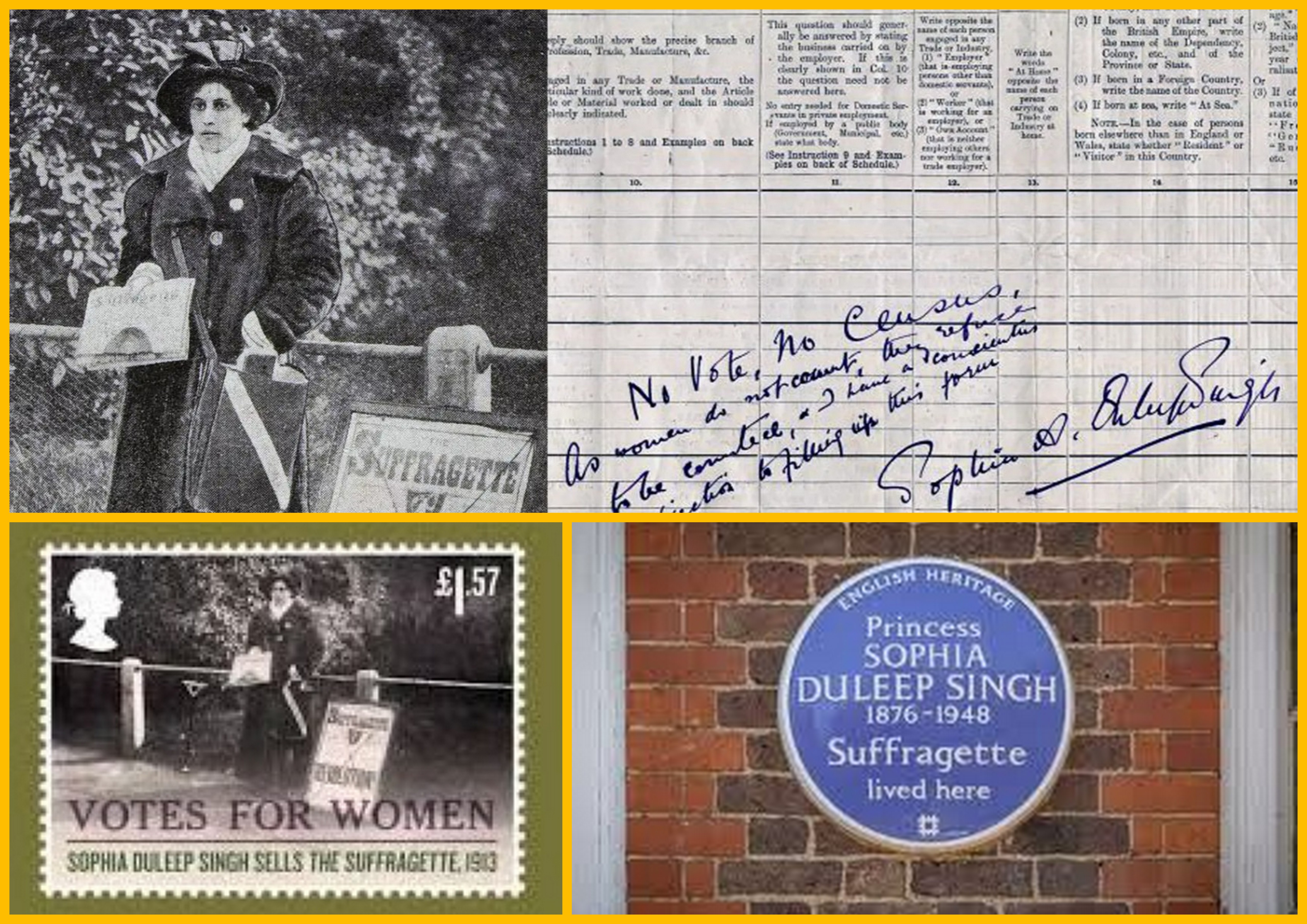 ೨೦ನೇ ಶತಮಾನದ ಆದಿಯಲ್ಲಿ ಇಂಗ್ಲೆಂಡ್ ದೇಶದ ಮಹಿಳೆಯರು ಮೂಲಭೂತ ಮತ್ತು ಮತದಾನದ ಹಕ್ಕು ಪಡೆಯಲು ನಡೆಸಿದ ಚಳುವಳಿಗಳಿಗೆ (Suffragette Movement) ಹೋರಾಡಿದ ಭಾರತ ಮೂಲದ ರಾಜಕುಮಾರಿ ಸೋಫಿಯಾ.  ಈಕೆ, ಭಾರತದ ಮತ್ತು ಇಂಗ್ಲೆಂಡಿನ ಶ್ರೀಮಂತ ಕುಟುಂಬದ ಆಶ್ರಯದಲ್ಲಿ ಬೆಳೆದರೂ ಅವಳ ಹೋರಾಟ ರಾಜಕೀಯ ಚಟುವಟಿಕೆಯಲ್ಲೇ ಇತ್ತು.