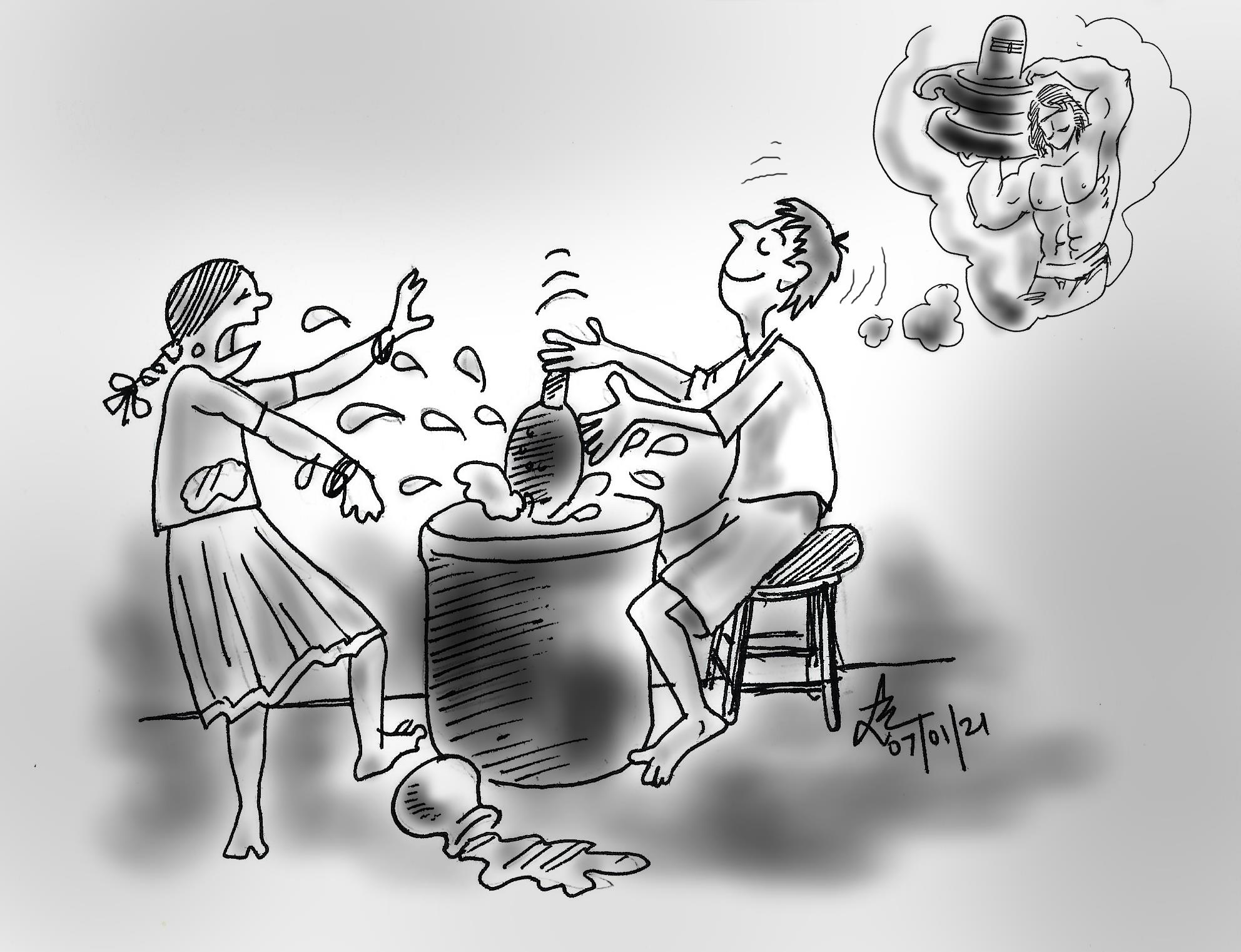 ಮಧ್ಯಮಿಕ ಶಾಲೆಯ ದಿನಗಳವು. ಮೈಸೂರಿನ ಮಡಿವಂತ ಬ್ರಾಹ್ಮಣ ಕುಟುಂಬಗಳಲ್ಲಿ ಮಹಿಳೆಯರು ತಿಂಗಳ ಮೂರು ದಿನಗಳು ಹೊರಗಿರುತ್ತಿದ್ದ ಸುದ್ದಿ ಎಲ್ಲರಿಗೂ ತಿಳಿದ ಸಾಮಾನ್ಯ ಜ್ಞಾನವಾಗಿತ್ತು. ಒಟ್ಟು ಕುಟುಂಬಗಳಲ್ಲಿ ಮನೆಯ ಇತರ ಮಹಿಳೆಯರು ಅಡುಗೆಮನೆ ಕಾರ್ಯಗಳನ್ನು ನಿರ್ವಹಿಸುತ್ತಿದ್ದರು. ಹಾಗಾಗಿ ಮಕ್ಕಳಿಗೆ ಆ ಸಮಯದಲ್ಲಿ ಅಡುಗೆಮನೆಯ ಬಗ್ಗೆ ಯಾವ ರೀತಿಯಲ್ಲೂ ತಲೆಕೆಡಿಸಿಕೊಳ್ಳುವ ಅವಶ್ಯಕತೆಯಿರಲಿಲ್ಲ. ಆದರೆ ೭೦ರ ದಶಕದಲ್ಲಿ ಒಟ್ಟು-ಕುಟುಂಬದ ದೃಶ್ಯ ಬದಲಾಗಿ, ಸಣ್ಣ ಕುಟುಂಬಗಳ ಪದ್ಧತಿ ಶುರುವಾಗಿತ್ತು. ನಮ್ಮ ಮನೆಯಲ್ಲಿ ನಾವಿಬ್ಬರು, ನಮಗೆ ಮೂರು ಮಕ್ಕಳು ಎನ್ನುವ ಭಾರತ ಸರ್ಕಾರದ ಕುಟುಂಬ ಯೋಜನೆಯ ಜಾಹೀರಾತಿನ ಘೋಷಣೆಯ ಪ್ರಕಾರ ನಾವು ಮೂರು ಮಕ್ಕಳು. ನಮ್ಮ ತಂದೆ ಬೆಳಿಗ್ಗೆ ಎದ್ದು ಕೆಲಸಕ್ಕೆ ಹೋಗುತ್ತಿದ್ದರಿಂದ, ತಿಂಗಳ ಆ ಮೂರು ದಿನಗಳ ಅಡುಗೆಮನೆ ಜವಾಬ್ದಾರಿ ಮಾಧ್ಯಮಿಕ ಶಾಲೆಯಲ್ಲಿದ್ದ ನನ್ನ ಅಕ್ಕ, ನಾನು ಮತ್ತು ನನ್ನ ತಮ್ಮನ ಹೆಗಲಿಗೆ ಬಿತ್ತು. ಸರಿ, ಆಗೆಲ್ಲ ಇನ್ನೂ ಗ್ಯಾಸ್ ಸ್ಟವ್, ಮಿಕ್ಸರ್, ಗ್ರೈಂಡರುಗಳಂತಹ ಸೌಲಭ್ಯವಿರಲಿಲ್ಲ. ಎಲ್ಲವೂ ನಮ್ಮ ತೋಳ್ಬಲವನ್ನು ಪರೀಕ್ಷಿಸುವ ಕಲ್ಲಿನ ಉಪಕರಣಗಳೇ ಬಳಕೆಯಲ್ಲಿದ್ದ ಕಾಲ. ನಾವೋ ಮಹಾ ಸಂಕೇತಿ ಬ್ರಾಹ್ಮಣ ಜನ! ಹುಳಿ ಮಾಡಿದರೆ ಅದನ್ನು ತಿರುವಿ ಮಾಡಬೇಕು. ಪುಡಿ ಹಾಕಿದ ಸಾಂಬಾರ್ ಯಾರಿಗೂ ಹಿಡಿಸುತ್ತಿರಲಿಲ್ಲ. ಭಾರಿ ಪೊಗರಿನ ಜನ. ಸರಿ ನಮ್ಮಮ್ಮ, ಮೂಲೆಯಲ್ಲಿ ನಿಂತು ಹೇಗೆ ಮಾಡಬೇಕು ಎನ್ನುವುದನ್ನು ನಿರ್ದೇಶಿಸಿ ನಮ್ಮ ಕೈಯಲ್ಲಿ ಅಡುಗೆ ಮಾಡಿಸುತ್ತಿದ್ದರು. ನನ್ನ ಅಕ್ಕನಿಗೆ ಅಡುಗೆಮನೆಯ ಬಗ್ಗೆ ಹೆಚ್ಚಿನ ಅಸ್ಥೆಯಿರಲಿಲ್ಲ. ಅವಳು ಪಾತ್ರೆ ತೊಳೆಯುವುದು, ಬಟ್ಟೆ ಒಗೆಯುವ ಕೆಲಸ ಮಾಡಿ, ಕೈತೊಳೆದುಕೊಳ್ಳುತ್ತಿದ್ದಳು. ನಾನು, ನನ್ನ ತಮ್ಮ ಇಬ್ಬರಿಗೂ ಅಡುಗೆಮನೆಯ ಬಗ್ಗೆ ಮಹಾ ಕುತೂಹಲ. ಅಂದು ಈರುಳ್ಳಿ-ಆಲೂಗೆಡ್ಡೆ ಹಾಕಿ ವಿಶೇಷವಾದ ಸಾಂಬಾರ್ ಮಾಡಿ ಎಲ್ಲರ ಮನಗೆಲ್ಲಲು ನಿರ್ಧರಿಸಿದೆವು. ಸರಿ ತೊಗರಿಬೇಳೆಯನ್ನು ಸ್ಟವ್ ಮೇಲೆ ಬೇಯಿಸಿ ಆಯಿತು. ತರಕಾರಿಯನ್ನು ಹಾಗೂ ಹೀಗೂ ಹೆಚ್ಚಿ ಅದನ್ನೂ ಬೇಯಿಸಿದ್ದೆವು. ಆಮೆಲೆ ಬಂತು ಹುಳಿಗೆ ಮಸಾಲೆಯನ್ನು ರುಬ್ಬುಗುಂಡಿನಲ್ಲಿ ತಿರುವಿ ಮಾಡುವ ಸನ್ನಿವೇಶ! ಅಮ್ಮ ಸಾರಿನ ಪುಡಿ ಹಾಕಿ ಕೆಲಸ ಮುಗಿಸಿ ಎಂದು ನೀಡಿದ ಸಲಹೆಯನ್ನು ನಾನು ನನ್ನ ತಮ್ಮ ಸಾರಾಸಗಟಾಗಿ ತಿರಸ್ಕರಿಸಿದೆವು. ಮನೆಯಲ್ಲಿದ್ದ ರುಬ್ಬುಗುಂಡಿನ ಗಾತ್ರ ನೋಡಿ ಸ್ವಲ್ಪ ಭಯವಾದರೂ, ಮನಸ್ಸಿಲ್ಲಿದ್ದ ಛಲ, ನಮ್ಮನ್ನು ಆ ಕಾರ್ಯ ಮಾಡಲೇಬೇಕೆಂಬ ನಿರ್ಧಾರಕ್ಕೆ ನೂಕಿತ್ತು. ಸರಿ ಮೊದಲಿಗೆ ಎಲ್ಲಾ ಸಾಂಬಾರ ಪದಾರ್ಥಗಳನ್ನೂ ಬಾಂಡಲೆಯಲ್ಲಿ ಹುರಿದೆವು. ನಂತರ ಅದನ್ನು ಕಬ್ಬಿಣದ ಹಾರೆಯಿಂದ ನಾನು ಹಾಗೂ ಹೀಗೂ ಮುಲುಕುತ್ತಾ ಪುಡಿಮಾಡಿಯೇ ಬಿಟ್ಟೆ.