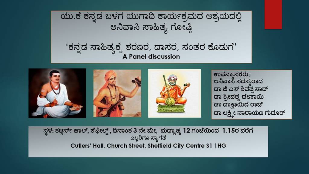 ಕೆಲವು ದಿನಗಳ ಹಿಂದೆ ಯು.ಕೆ ಕನ್ನಡ ಬಳಗದ ಯುಗಾದಿ ಹಬ್ಬದ ಸಂಭ್ರಮದಲ್ಲಿ ಅನಿವಾಸಿ ಸಾಹಿತ್ಯಗೋಷ್ಠಿಯನ್ನು ಏರ್ಪಡಿಸಲಾಗಿತ್ತು. ಈ ಸಾಹಿತ್ಯ ಗೋಷ್ಠಿಯಲ್ಲಿ ‘ಕನ್ನಡ ಸಾಹಿತ್ಯಕ್ಕೆ ಶರಣರ, ದಾಸರ ಮತ್ತು ಸಂತರ ಕೊಡುಗೆ’ಯನ್ನು ಕುರಿತು ಅನಿವಾಸಿ ಸದಸ್ಯರು ತಮ್ಮ ಚರ್ಚೆಯನ್ನು ಮಂಡಿಸಿದರು. ಈ ಗೋಷ್ಠಿಯಲ್ಲಿ ಶರಣರ