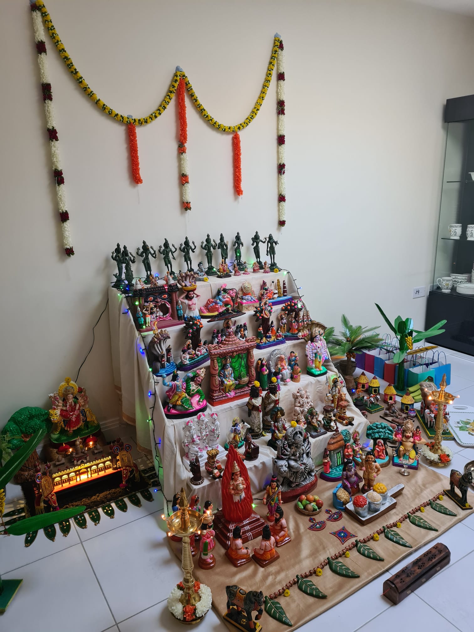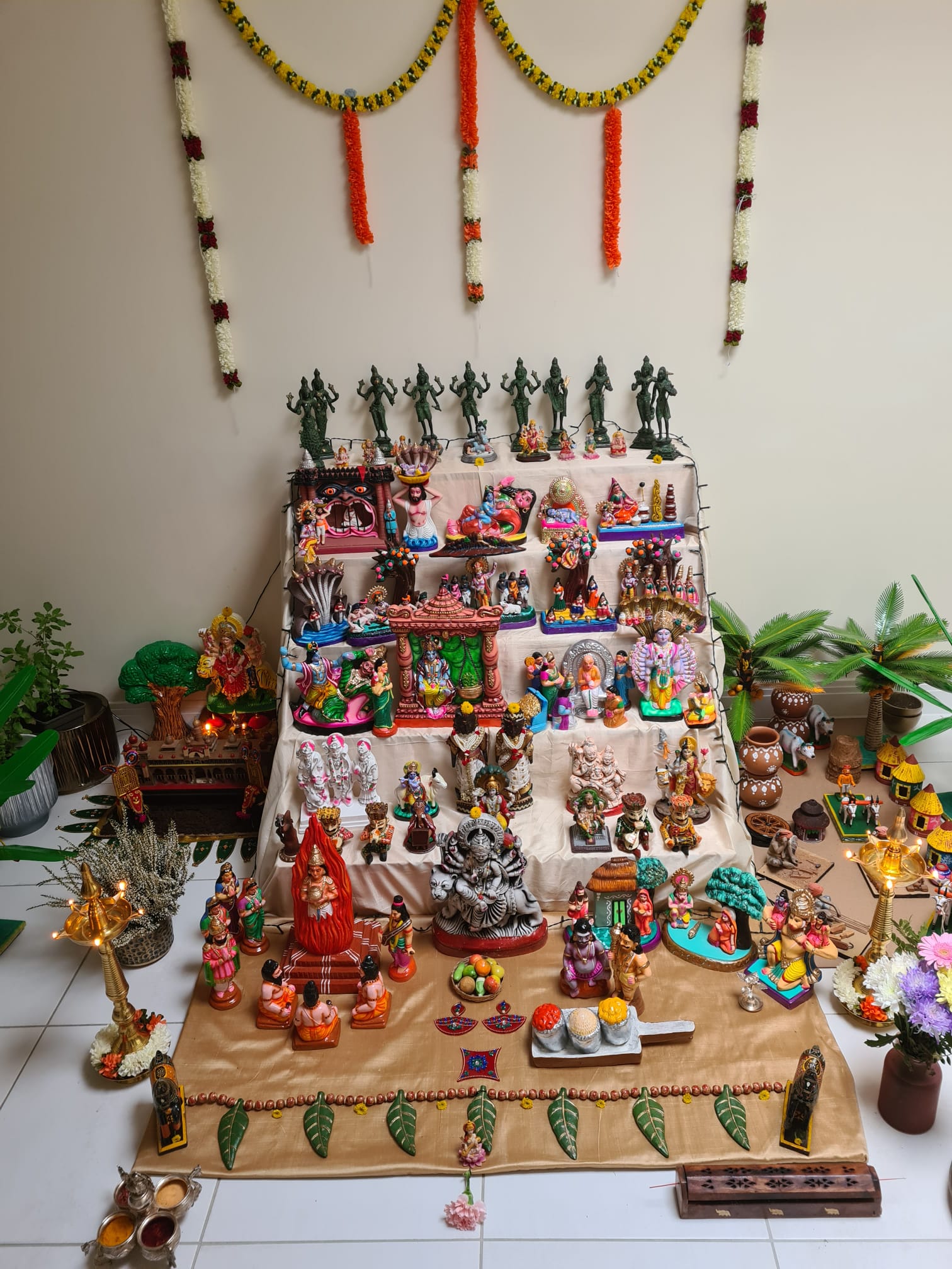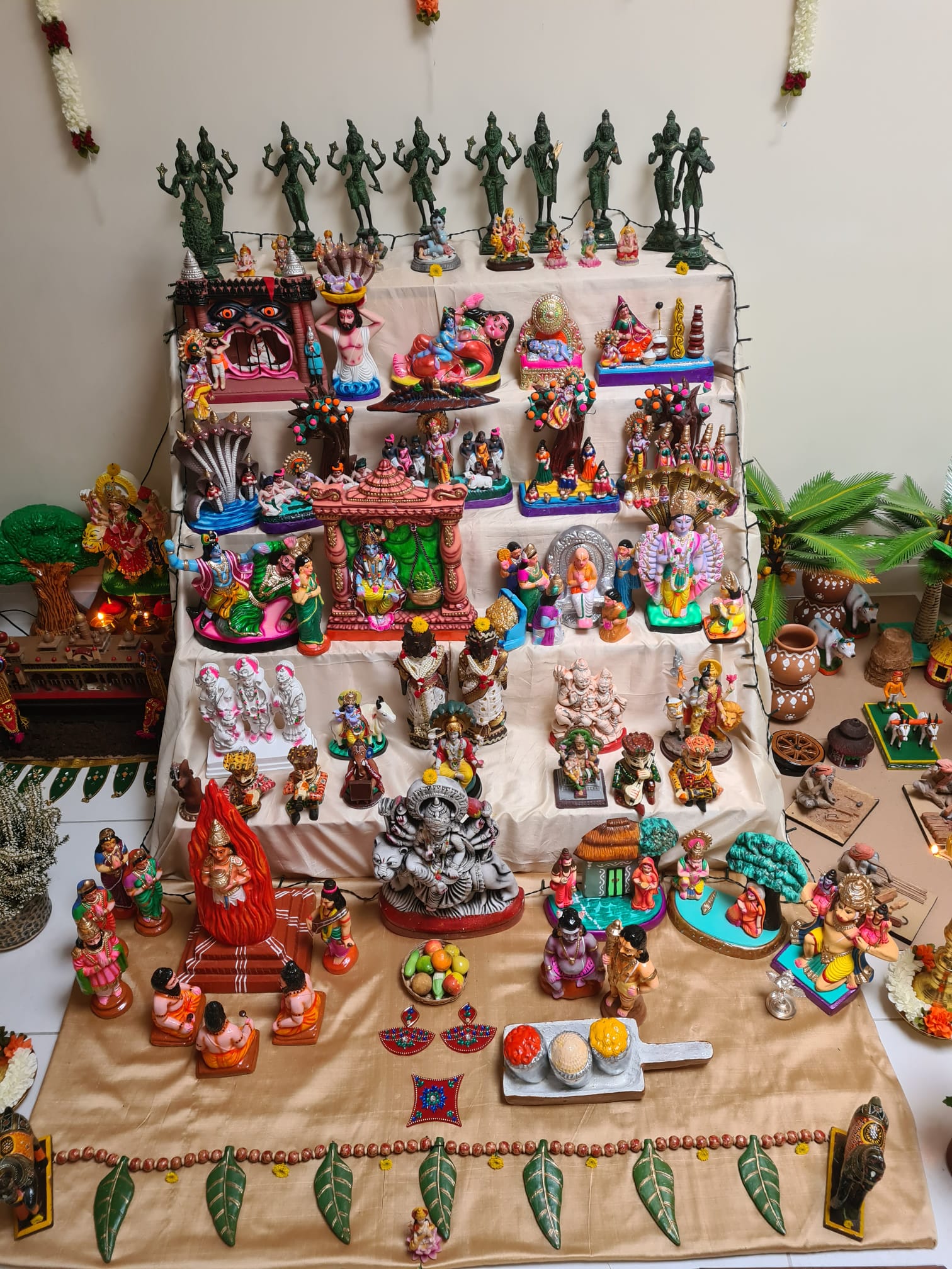 ಬೊಂಬೆಗಳನ್ನು ಜೋಡಿಸುವುದೂ ನನಗೆ ತುಂಬಾ ಇಷ್ಟದ ಕೆಲಸ. ವಿಷ್ಣುವಿನ ಹತ್ತು ಅವತಾರಗಳು, ಇನ್ನೂ ಬೇರೆ ಬೇರೆ ಬೊಂಬೆಗಳನ್ನು ಅಟ್ಟದಿಂದ (attic) ಕೆಳಗಿಳಿಸಿ, ಒರೆಸಿ ಸಾಲಾಗಿಡುವುದು. ಇದರಲ್ಲಿ ಕೆಲವು ನಮ್ಮ ಅಜ್ಜಿಯ ಮನೆಯಿಂದ ತಂದದ್ದು. ಗಂಡ-ಹೆಂಡತಿಯ ಜೋಡಿಬೊಂಬೆ ಅಮ್ಮನ ಮದುವೆಯಲ್ಲಿ ಅಜ್ಜಿ ಕೊಟ್ಟದ್ದಂತೆ – ಅಮ್ಮ ಹೇಳಿದ್ದು ನನಗೆ ನೆನಪಿದೆ.