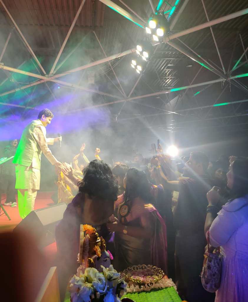 ಕನ್ನಡ ಬಳಗದ ೪೦ನೇ ಸಂಭ್ರಮಾಚರಣೆ ಅದ್ದೂರಿಯಾಗಿ ನಡೆಯುತಿತ್ತು. ಬೆಳಗಿನಿಂದ ಸಂಜೆಯವರೆಗೂ ವ್ಯವಿಧ್ಯಮಯ ಕಾರ್ಯಕ್ರಮಗಳು ನೂರಾರು ಕನ್ನಡಾಭಿಮಾನಿಗಳ ಮನ ಸೆಳೆದಿದ್ದವು, ಇನ್ನೇನು ಸಂಜೆಯ ಕಾರ್ಯಕ್ರಮ ಶುರುವಾಗುವುದರಲ್ಲಿತ್ತು. ಜೇನಿನ ಸವಿಯ, ಸುಮಧುರ ಕಂಠದ ಸರದಾರ ರಾಜೇಶ್ ಕೃಷ್ಣನ್ ರವರನ್ನು ಸಂಗೀತೋತ್ಸವಕ್ಕೆ ಬರಮಾಡಿಕೊಳ್ಳುವುದಕ್ಕೆ ನೆರೆದಿದ್ದ ಪ್ರತಿಯೊಬ್ಬರೂ ಕಾತುರತೆಯಿಂದ ಕಾದಿದ್ದರು. ಎಲ್ಲರೂ ಸಂಧರ್ಭಕ್ಕೆ ತಕ್ಕ ಉಡುಗೆ ತೊಡುಗೆಯನ್ನು ತೊಟ್ಟು ತಯಾರಾಗಿದ್ದರು. ಈ ರಸ ಸಂಜೆಗೆ ಕಳೆ ಕಟ್ಟಲು ಮುಖ್ಯ ಅತಿಥಿಗಳಾದ ಮೈಸೂರು ಮಹಾರಾಜ ಶ್ರೀ ಯದುವೀರ ಕೃಷ್ಣದತ್ತ ಚಾಮರಾಜ ಒಡೆಯರ್, ಪ್ರೊ ಗುರುರಾಜ ಕರಜಗಿ, ಶ್ರೀ ವಿಶ್ವೇಶ್ವರ ಭಟ್, ಶ್ರೀ ರವಿ ಹೆಗೆಡೆ ಯವರುಗಳು ಉಪಸ್ಥಿತರಿದ್ದರು. ರಾಜೇಶ್ ಕೃಷ್ಣನ್ ರವರ ಬರುವಿಕೆಗೆ ಎದುರು ನೋಡುತಿದ್ದ ಸಭಿಕರ ಗಮನ ಸೆಳೆಯುತ್ತ ತಮ್ಮ ಸುಂದರ ಗಾಯನದಿಂದ ಗಾಯಕಿ ಪುಷ್ಪ ಆರಾಧ್ಯರವರು ‘ಒಮ್ಮೆ ನಿನ್ನನ್ನು ಕಣ್ತುಂಬ ಕಾಣುವಾಸೆ ಎಲ್ಲಿರುವೆ’ ಹಾಡಿನ ಮೂಲಕ ಕಾರ್ಯಕ್ರಮಕ್ಕೆ ಚಾಲನೆ ನೀಡಿದರು. ‘ಬಾಳ ಬಂಗಾರ ನೀನು ಹಣೆಯ ಸಿಂಗಾರ ನೀನು’ ಎಂದು ಹಾಡಿ ಮುಗಿಸುತ್ತಿದ್ದಂತೆಯೇ ‘ಆರ್ ಕೆ, ಆರ್ ಕೆ, ಆರ್ ಕೆ’ ಎಂಬ ಅಭಿಮಾನಿಗಳ ಉದ್ಘೋಷದೊಂದಿಗೆ ರಾಜೇಶ್ ಕೃಷ್ಣನ್ ರವರ ಆಗಮನವಾಯಿತು. ಅಭಿಮಾನಿಗಳೆಲ್ಲ ತಾ ಮುಂದು ನಾ ಮುಂದು ಎಂದು ಅವರ ಕೈ ಕುಲುಕಲು, ಸೆಲ್ಫಿ ತೆಗಿಸಿಕೊಳ್ಳಲು ಉತ್ಸುಕರಾದರು. (–>Photo: Ramya)