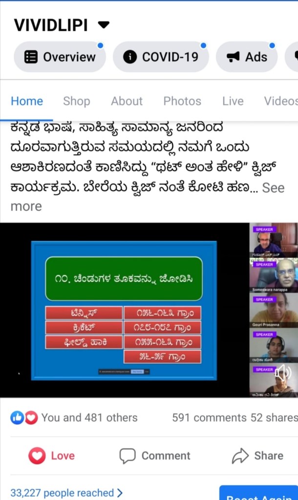 [facebook url=”https://www.facebook.com/vividlipi/videos/202429907731383″ /ದೆ ಯೂಟ್ಯೂಬ್ ಮತ್ತು ಏರ್ ಮೀಟ್ ವಾಹಿನಿಗಳಲ್ಲೂ ಏಕಕಾಲಕ್ಕೆ ನೋಡಲು ವೀಕ್ಷಕರಿಗೆ ಸಾಧ್ಯವಾಯಿತು.
